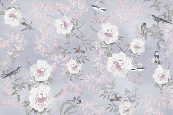Una refinada composición de belleza natural, en la que flores, pájaros y elementos botánicos se representan en un equilibrio armonioso. Los colores sutiles y los patrones detallados brindan una apariencia elegante y atemporal que transforma cualquier habitación.