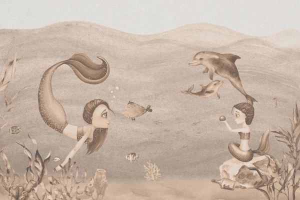 Podwodne zwierzęta z dwiema małymi syrenkami w kolorze taupe