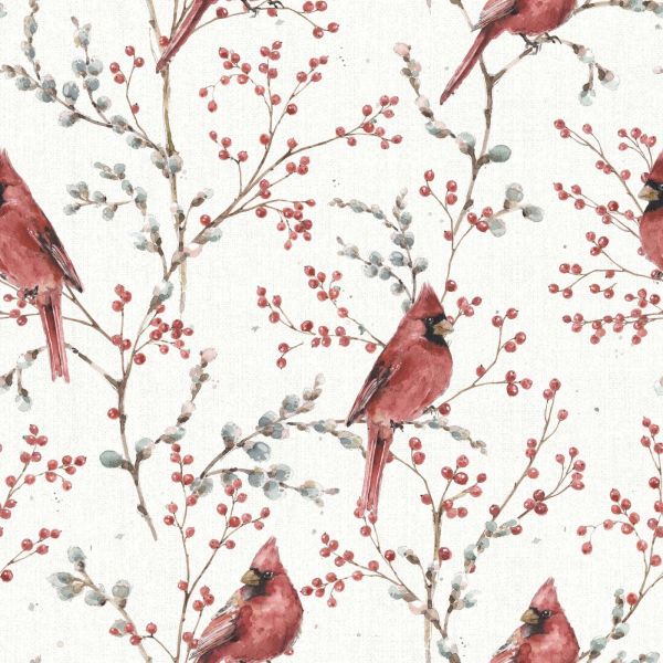 Ten nastrojowy projekt uchwyca urok spokojnego zimowego poranka, z jaskrawoczerwonymi kardynałami gnieżdżącymi się na gałęziach pełnych jagód. Ilustracje wykonane są w delikatnej technice akwarelowej, która nadaje im wyrafinowany, niemal ręcznie malowany wygląd. Czerwone ptaki tworzą piękny kontrast z miękkimi szaro-zielonymi i niebiesko-szarymi odcieniami liści, podczas gdy subtelna struktura tła nadaje całości głębi bez dominacji. W klasycznym wnętrzu ten projekt stanowi ciepły akcent, zwłaszcza w połączeniu z drewnianymi meblami, aksamitnymi tkaninami i głębokimi kolorami, takimi jak bordo czy mchy. Również w stylu wiejskim lub rustykalnym ten motyw pasuje idealnie: pomyśl o białym drewnie, dzianinowych pledach, miękkiej wełnie i naturalnych materiałach. Dodaje przytulnej, nostalgicznej atmosfery każdemu pomieszczeniu. Użycie kolorów jest miękkie i zrównoważone: jaskrawa czerwień dla ptaków, w połączeniu z gałęziami w beżowych i brązowych tonach, jagodami w ciepłej czerwieni i szaro-zielonymi liśćmi. Te kolory tworzą spokojną, zimową atmosferę bez popadania w ponurość. Ten projekt doskonale sprawdza się w salonie, holu lub kąciku do czytania, gdzie pożądane są ciepło i atmosfera. Również bardzo odpowiedni jako sezonowy akcent w sypialni lub oranżerii, zwłaszcza w miesiącach zimowych. Subtelne powtórzenie wzoru zapewnia spokój, podczas gdy kardynały dodają iskrzącego i żywego elementu.