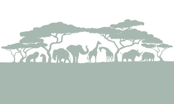 Jasnozielone tło, które zmienia się w krajobraz z sylwetką zwierząt safari.