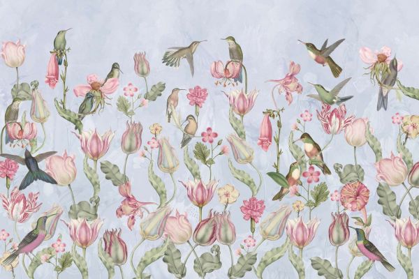Fototapeta - Symfonia Kolibrów Wiosennych - Pastelowa Niebieska Serenada