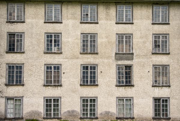 Fasada starej fabryki. Ta fototapeta natychmiast tworzy industrialną atmosferę w Twoim domu.