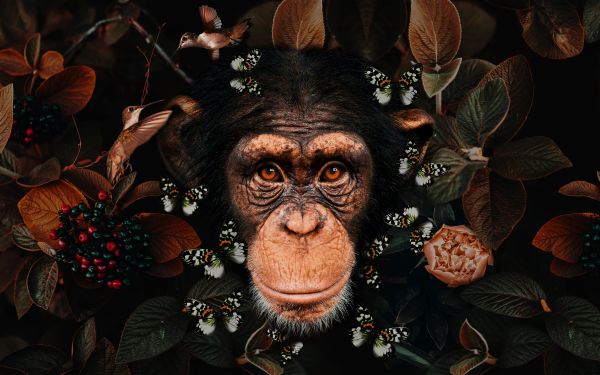Tropical Chimpanzee nada każdemu pomieszczeniu niepowtarzalny wygląd. Ta tapeta sprawi, że szympans wyjdzie ze ściany.