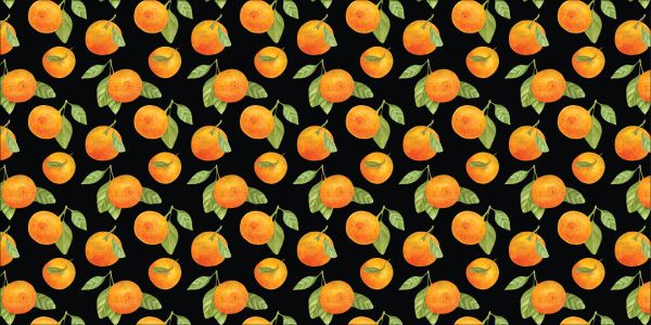 Wzór z akwareli mandarynek na czarnym tle.