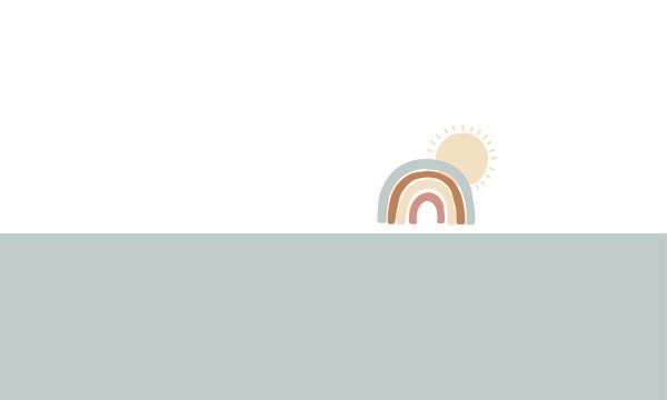 Szaro-niebieskie tło z małą pastelową tęczą i słońcem po prawej stronie.