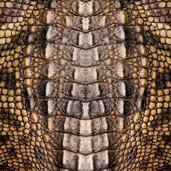 Struktura krokodyla na fototapecie. Ciemne kolory na tej fototapecie stworzą ciepłą atmosferę w Twoim domu.