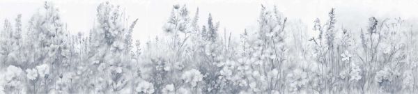Spokojna łąka kwiatowa w delikatnych odcieniach niebieskiego. Chłodne tonacje nadają całości spokojny, medytacyjny wygląd pełen ciszy i przestrzeni.