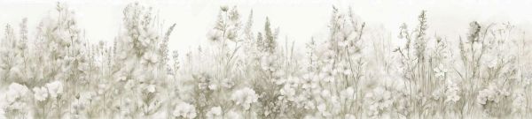 Wyszukana łąka kwiatowa w delikatnych odcieniach taupe i piasku. Ziemski blask wprowadza ciepło i miękkość, z klasycznym wyglądem pełnym spokoju i elegancji.