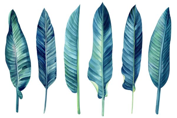 Tropikalne liście na białym tle w różnych materiałach