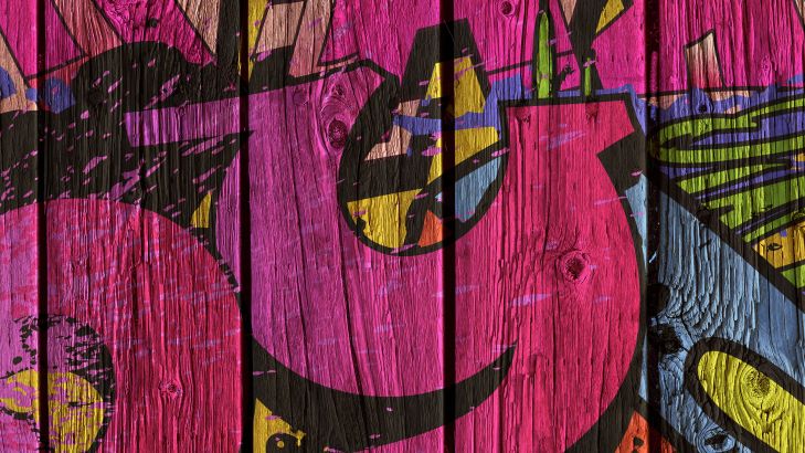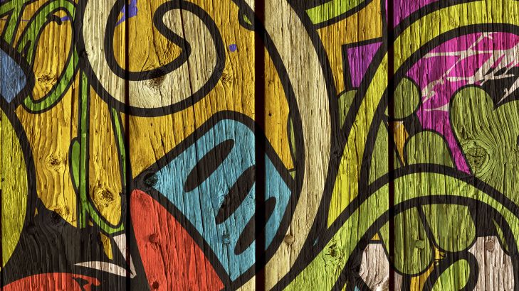 Uliczne graffiti na starym drewnie. Połącz tę fototapetę w swoim domu i stwórz jeszcze większą atmosferę.