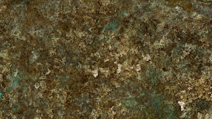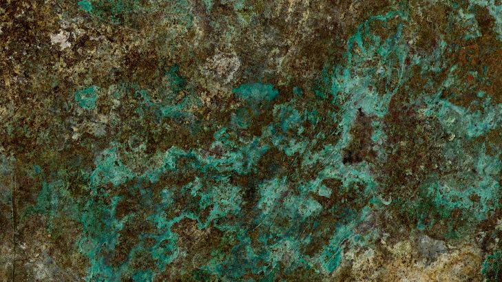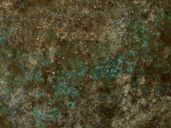 Piękne utlenianie na metalu. Przenieś piękne odcienie zieleni i brązu do swojego pokoju z tą tapetą.