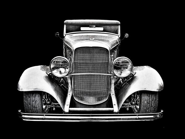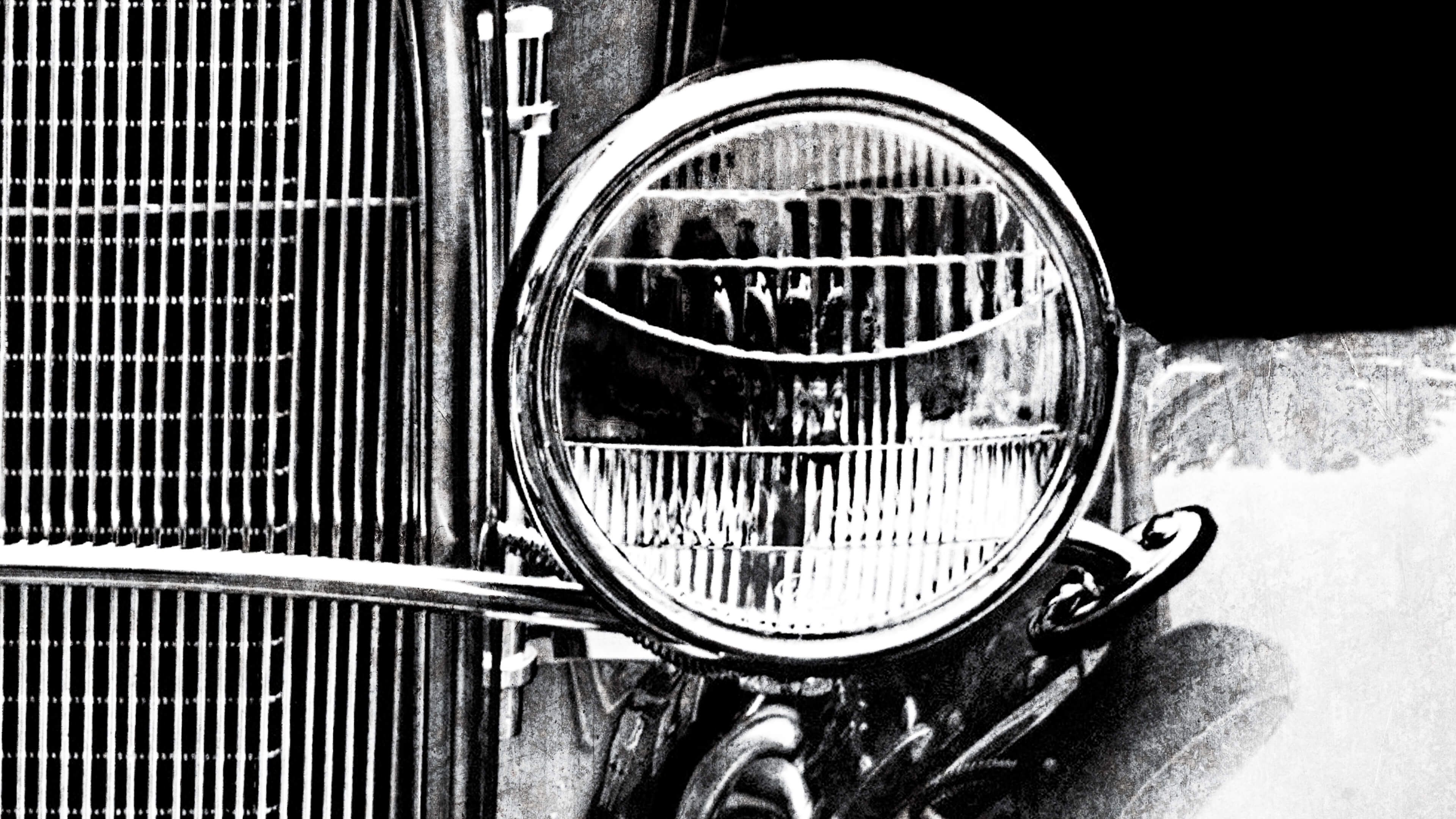 Oldtimer w czerni i bieli. Ponieważ obraz jest w czerni i bieli, można łatwo połączyć tę tapetę w prawie każdym pokoju.