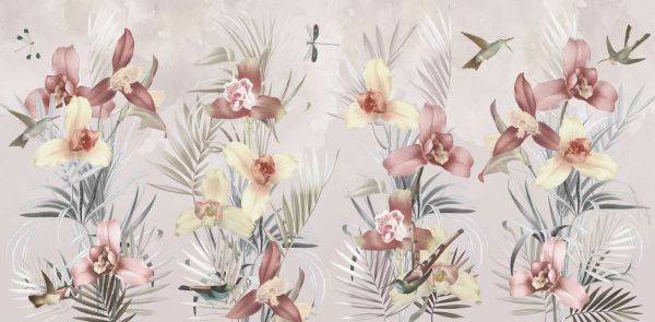 Diseños elegantes con flores exuberantes, colibríes y hojas elegantes, enriquecidos con combinaciones de colores suaves. Estos patrones aportan una belleza natural refinada y relajante a cualquier habitación.