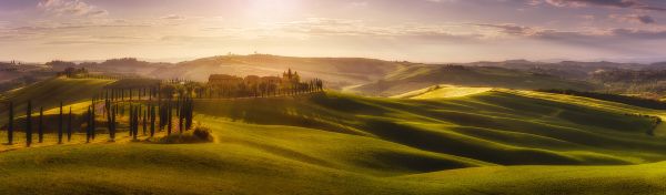 Waves of Light przedstawia piękny górski krajobraz. Jeśli dobrze się przyjrzeć, można dostrzec promienie słoneczne nad krajobrazem.