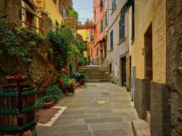 Stara włoska ulica z kolorowymi domkami. Wczuj się we włoski klimat dzięki tej fototapecie w swoim domu.