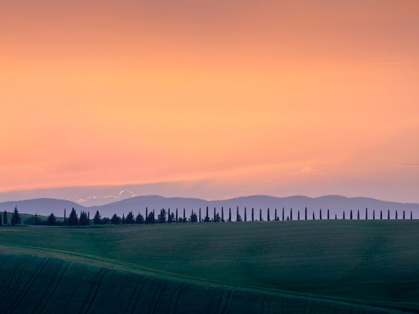 Fototapeta - Włoski krajobraz z pomarańczowym niebem