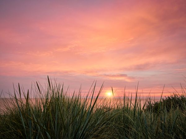 Piękny wschód słońca nad morzem z dużą ilością kolorów. Połącz tę fototapetę na przykład w salonie.