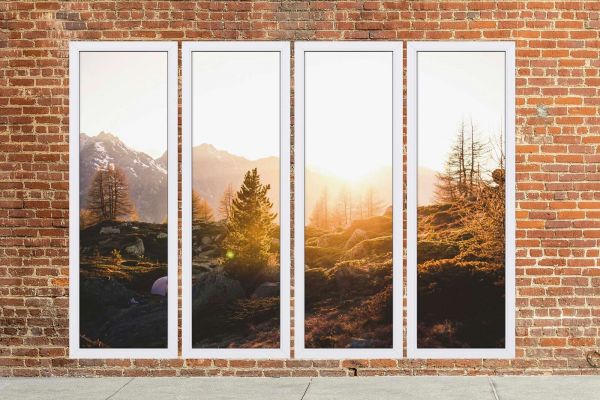 Obraz jest podzielony na cztery wysokie panele, co zapewnia rytm i imponujący pionowy wygląd. Dzięki temu ten projekt idealnie wpisuje się w nowoczesne, industrialne lub rustykalne wnętrza. W przestrzeni industrialnej – pomyśl o ceglanych ścianach, stali i betonie – ten projekt dodaje ciepła i naturalnego kontrastu. W stylu chalet lub wiejskim więź z życiem na świeżym powietrzu staje się jeszcze bardziej wyraźna.