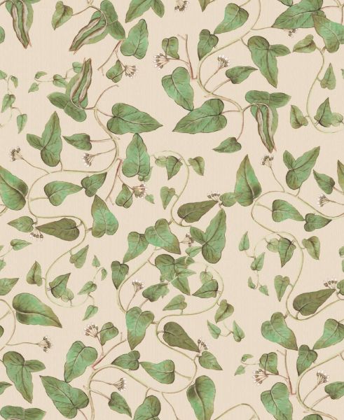 Zabawne pnącza fasoli z świeżo zielonymi liśćmi i delikatnymi białymi kwiatkami snują się nad miękkim kremowym tłem. Naturalne kształty i ręcznie malowane detale ożywiają świeżą i lekką atmosferę botaniczną.
