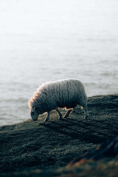 Wiejskie życie na zachodnim wybrzeżu Szkocji. Owce pasą się wzdłuż wybrzeża.