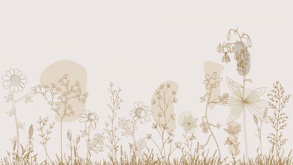 Wysokie pole kwiatowe narysowane w różnych odcieniach natury. Kolor: beżowy, brązowy i zielony