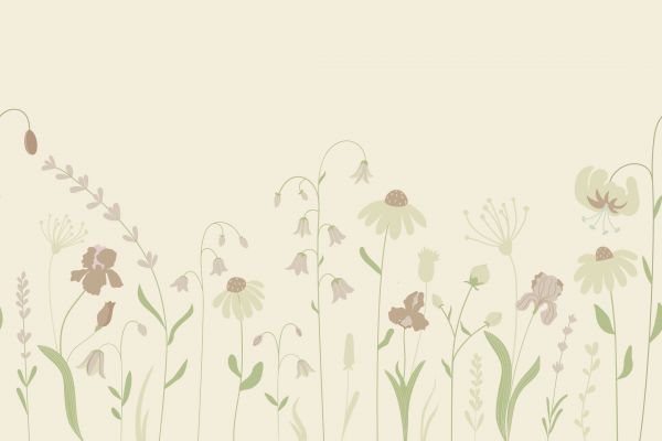 Wysokie pole kwiatowe z różnymi kwiatami w odcieniach beżu i starego różu. Kolor: beżowy i stary róż