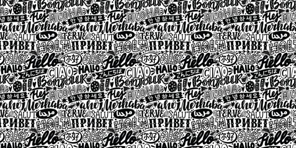Wesoły czarno-biały wzór z tekstami doodle.