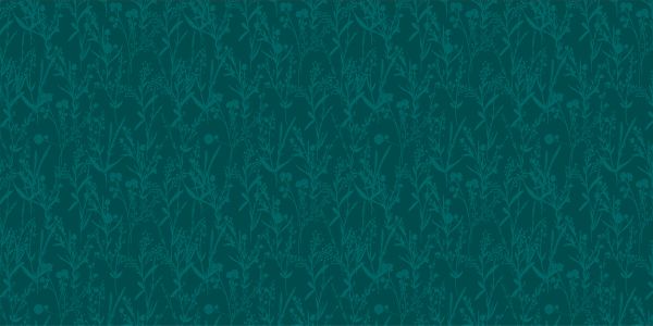 Unikalny wzór różnych kwiatów, gałęzi i liści losowo rozrzuconych w kolorze turkusowym.