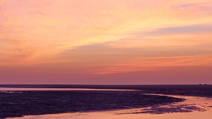 Kolorowy zachód słońca na plaży.