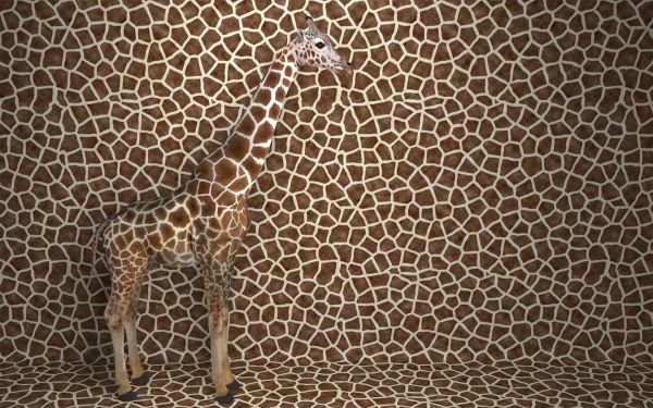 Żyrafa 3D zakamuflowana w tle.