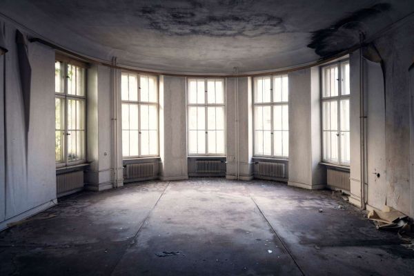 Imponujący projekt, który uchwyca atmosferę opuszczonego pokoju, gdzie światło słoneczne tajemniczo wpada przez duże okna. Wytarta podłoga, łuszczące się ściany i ciemne plamy wilgoci na suficie opowiadają historię minionej chwały. Melancholijna, ale jednocześnie nastrojowa wizja, która wydaje się ponadczasowa i intrygująca.