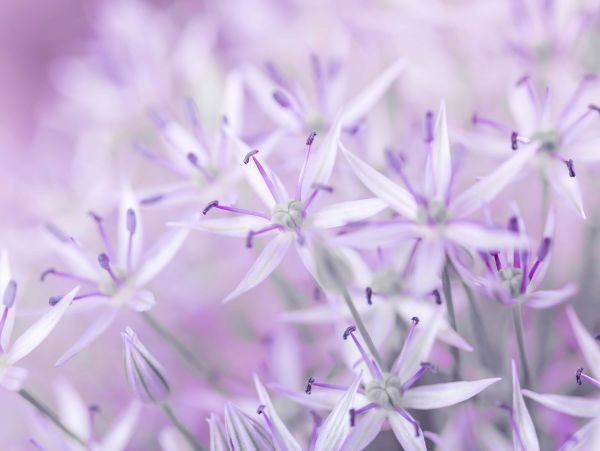 Zbliżone kwiaty allium w kolorze jasnofioletowym. Połącz tę fototapetę na przykład w salonie.
