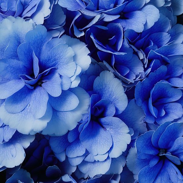 Zbliżenie na niebieskie hortensje w różnych materiałach