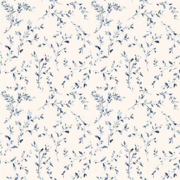Elegancki powtarzający się motyw z wdzięcznymi gałązkami z niebieskimi listkami w stylu akwareli na jasnym tle. Projekt emanuje spokojem, prostotą i wyrafinowaniem.