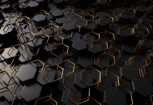 Pełne wdzięku czarne sześciokąty ze złotymi obwódkami. Połącz tę fototapetę na przykład w sypialni, aby uzyskać jeszcze większą atmosferę.