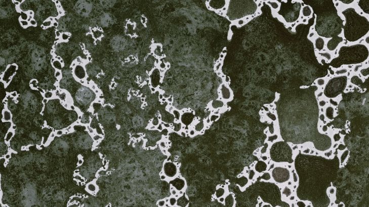 Zielona konstrukcja stalowa. Ze względu na ciepłe kolory w tej strukturze można dobrze połączyć tę fototapetę w swojej sypialni.