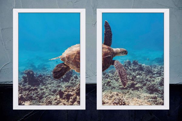 Tekstury rafy, wzory na skorupie i przezroczystość wody nadają głębię i szczegóły obrazowi, sprawiając, że jest nie tylko wizualnie atrakcyjny, ale także zachęca do zadumy. Żółw morski – symbol spokoju, mądrości i zrównoważonego rozwoju – sprawia, że ten projekt jest znaczącym i stylowym dodatkiem do każdego wnętrza.