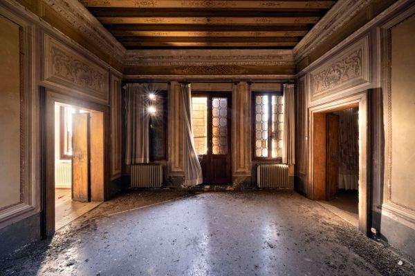 To projekt uchwyca atmosferę opuszczonego pałacu w stanie upadku, gdzie czas pozostawił swoje ślady. Złota poświata promieni słonecznych wpada przez stare okna i oświetla finezyjne, ale zniszczone detale przestrzeni. Łuszcząca się farba, wytarte podłogi i ornamenty z bogatą historią nadają temu obrazowi melancholijną urodę, jakby przestrzeń czekała na nowy rozdział. Inspiracja z fotografii urbex sprawia, że ten design jest idealny do wnętrz z surowym, charakterystycznym akcentem. W industrialnym wystroju może wspaniale współgrać z metalowymi akcentami, ciemnymi gatunkami drewna i meblami vintage, tworząc ekscytującą mieszankę starego i nowego. W klasycznym lub bohemskim wnętrzu można go połączyć z welurowymi tkaninami, mosiężnymi detalami i ciepłym oświetleniem, aby stworzyć mistyczną, romantyczną atmosferę. Ten projekt jest idealny do salonów, hoteli, restauracji i kreatywnych przestrzeni, gdzie pożądana jest unikalna, historyczna atmosfera. Fotografia urbex przynosi ze sobą poczucie przygody i odkrycia, a ten design przekłada tę emocję na wnętrze. Wywołuje pytania o historie przeszłości i wprowadza artystyczny, nostalgiczny charakter do każdej przestrzeni. Doskonały wybór dla miłośników minionej chwały i tajemniczej urody opuszczonych miejsc.