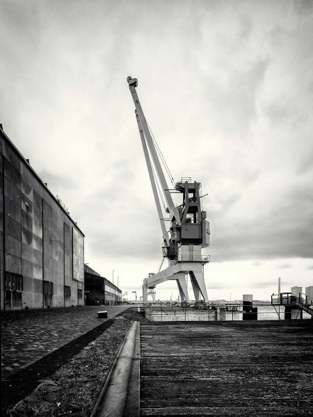 Dawny teren RDM przy Heijplaat w porcie w Rotterdamie jest szczególną scenerią dla surowej fotografii czarno-białej. Ogromne budynki i dźwigi dają piękny historyczny obraz tego, co kiedyś miało tam miejsce.